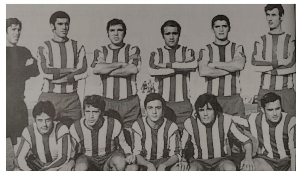 CF GANDIA: Sanz, Totó, Melo, Mozún, Maso, Soldevila, Tano, Amorós (Juanín Martí 45′), Sancho, Crespo, Soto (Pepín 45′).