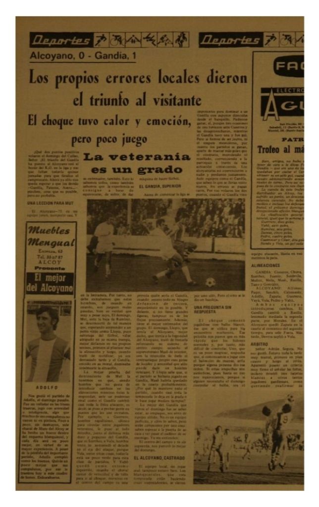 GANDIA-ALCOYANO. EL CLÀSSIC DEL RIU SERPIS. TEMPORADA 1974/75.
