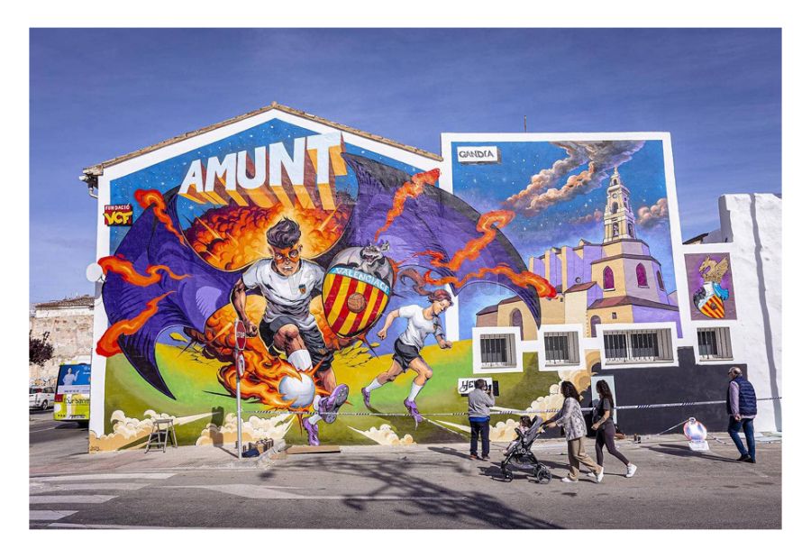 Fa un temps em vaig trobar, en un pàrking prop del poliesportiu, a dos minuts del Guillermo Olagüe, un mural alegòric del València CF. Un mural espectacular (felicite els autors), però que em va resultar indigest i em va provocar una forta decepció. Qué bonic haguera quedat un mural amb l’ escut del CF Gandia, amb la figura d’ Antonio Soldevila o de Domingo Pomar…estic segur que a ningú a Alcoi se li hagués acudit fer un mural d’ un altre equip prop d’ El Collao.