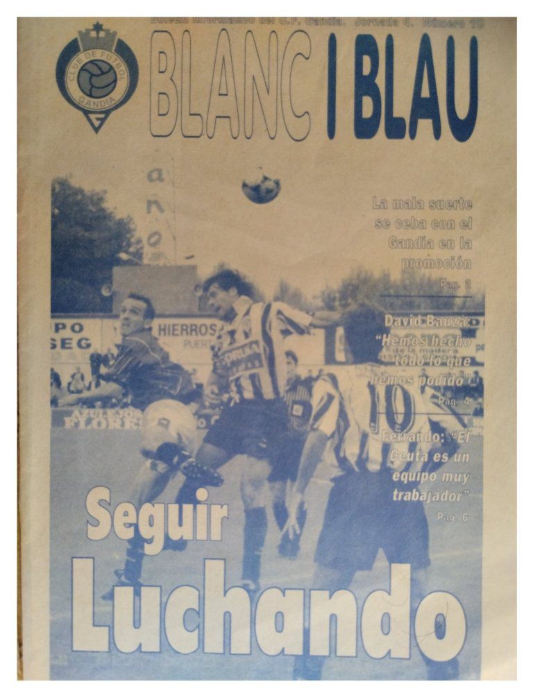 * Naix «Blanc-i-Blau». Dionisio Ollero és un president ambiciós que preten professionalitzar el club i presenta importants projectes de futur. Una de les primeres iniciativas es la creació d’ un butlletí informatiu amb tota la informació relacionada amb el club, que s’ entrega, gratuïtament, els dies de partit al Guillermo Olagüe. El seu nom es Blanc-i-Blau i el primer número apareix al mes de gener de l’ any 2000.