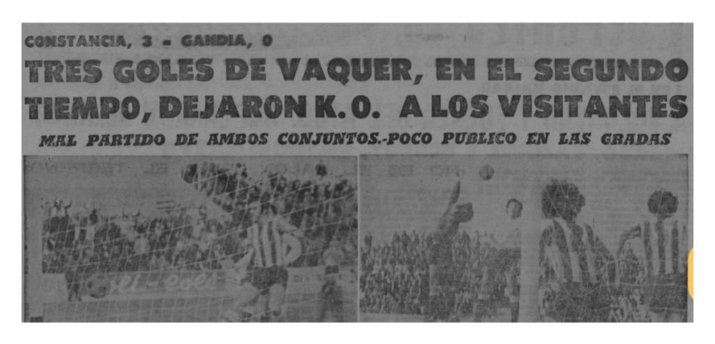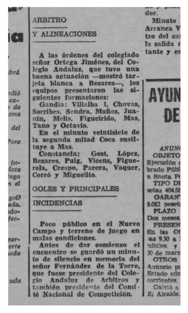 Retall del Contància-Gandia corresponent a la jornada 25 de la temporada 1975/76. Sendra, que te 18 anys i juga amb el filial, debuta en Tercera Divisió. (Diari Baleares, edició del 9 de Març de 1976).