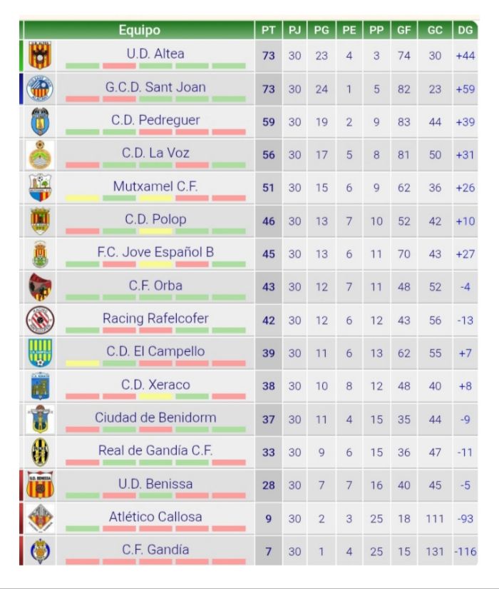 Amb la victòria administrativa al Real i els dos empats anteriors, el Gandia acumulava, doncs, tres partits sense perdre. El campionat es paralitzava durant dues setmanes a causa de les festivitats de Falles i de Setmana Santa. Quedaven 6 partits per a la fi i l’ equip de Lázaro Moreno somiava amb esquivar la darrera posició de la taula, superant el seu rival més directe, l’ Atlético Callosa d’ En Sarrià. Somiava amb finalitzar la lliga dignament i, qui sap, aconseguir la primera victòria sobre el terreny de joc…el següent partit davant el Jove español B, al Guillermo Olagüe, el Gandia va perdre per 0-8. La resta de partits també es van perdre, incloent un altre 0-8 a casa davant el Xeraco, en la penúltima jornada. L’ equip blanc-i-blau va finalitzar últim del seu grup amb 7 punts i, a més, va tindre el dubtós honor de ser el pitjor equip de tota la Primera Regional.