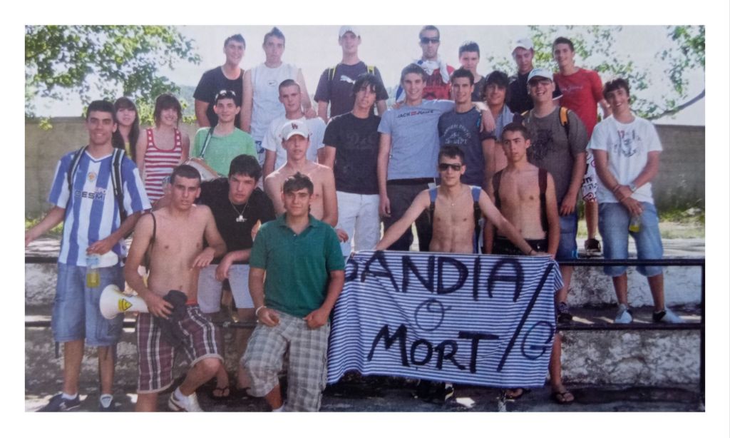 No va estar sol el Gandia a La Roda. Prop de 400 aficionats es van desplaçar en vehicles particulars, i en autobusos sufragats pel consistori municipal (Fotografia Les Penyes/Àlex Oltra). Dissabte 22 de maig de 2010. Estadi Municipal (La Roda). El Gandia visita La Roda amb una mínima renda d’ un gol per aconseguir l’ ascens. El camp Municipal presenta un plé absolut, amb 3.000 espectadors en les grades i presència de molts aficionats gandians. El partit no pot començar pitjor per al Gandia: Mauro remata de cap un còrner quan només es porten 20 minuts de joc i avança els locals. El partit, molt igualat, es desequilibrarà amb l’ expulsió del jugador de La Roda Jesús, després de veure la segona targeta groga al minut 10 de la segona part. Amb superioritat numèrica el Gandia es bolca davant la porteria manxega en busca del gol de l’ empat, necessari per aconseguir l’ ascens. Seligrat trau a tota l’ «artilleria pesada» en la segona part i a falta de 12 minuts Marcos, infiltrat després de no acabar de recuperar-de d’ una lesió muscular, entra al terreny de joc per a fer història. En la seua primera intervenció Marcos, al minut 83, té una bona oportunitat per aconseguir l’ empat però es torna a «trencar» i ha de jugar els darrers minuts lesionat. El partit arriba a la seua recta final, amb el Gandia buscant desesperadament el gol salvador i amb Marcos ranquejant, quan al minut 89 es produeix la jugada històrica: centrada de Peñarroya per la banda esquerra, rematada de Sergio Floro i el baló, rebutjat pel porter local, arriba a peus de Marcos, qui aconsegueix el gol de l’ ascens en el seu últim partit com a futbolista. Marcos farà història i el Gandia, nou temporades després, tornarà a la Segona Divisió B.
