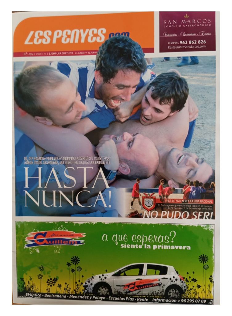 * Muiño preocupa. Al mes d’ abril, amb l’ equip salvat, el CF Gandia rep una notificació de la Seguretat Social on s’ informa de la demanda presentada per l’ ex-jugador Muiño. El jugador vasc reclama una invalidesa total per una lesió que va patir jugant amb el Gandia en la temporada 2008/09. La directiva blanc-i-blava reacciona amb sorpresa i assegura que disposa d’ un certificat mèdic on s’ acredita l’ alta del jugador. Els advocats del club confien en una resolució favorable…